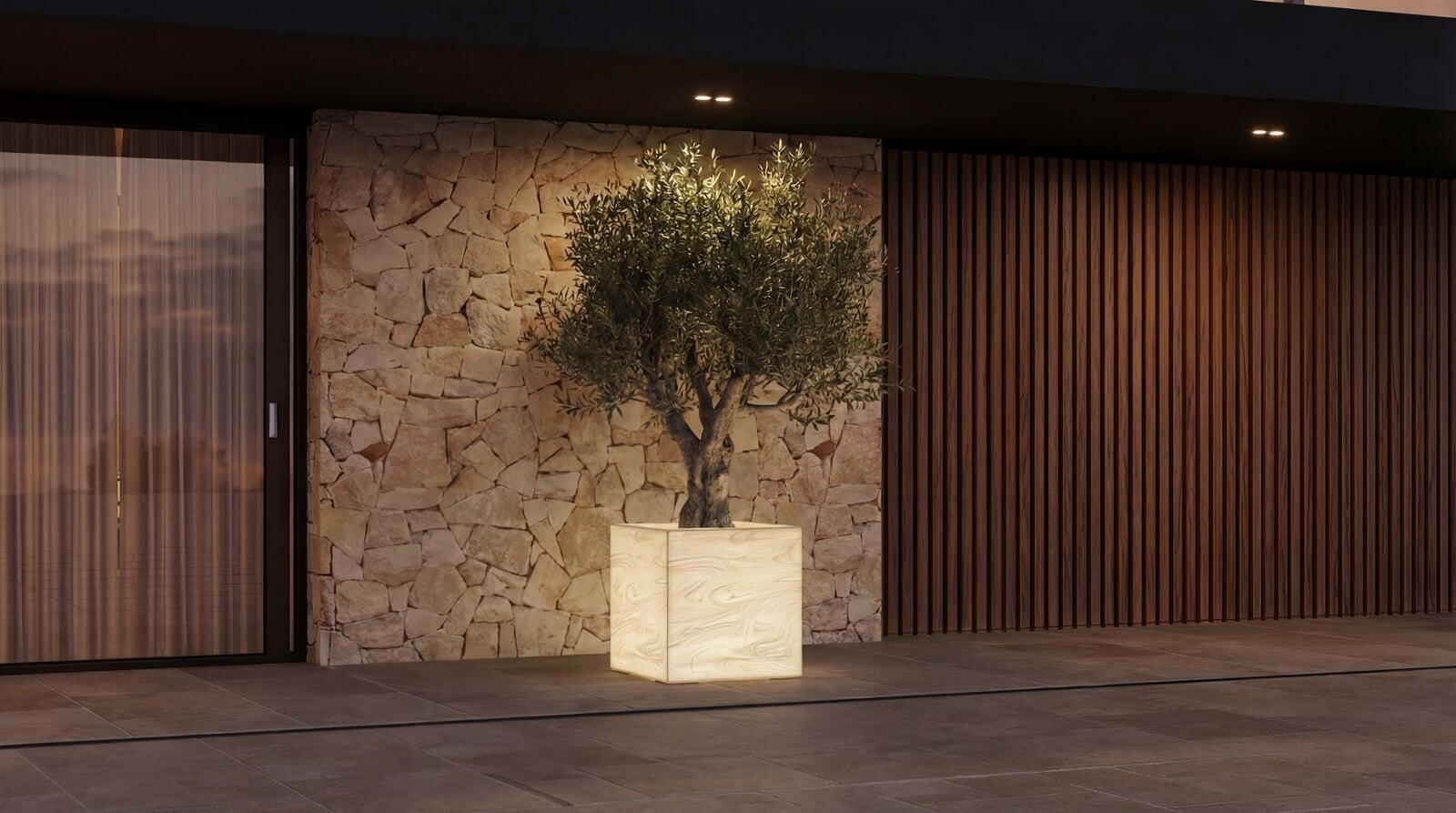 Leuchtender Pflanzenkubus – inszeniert architektonisch anspruchsvolle Aussenräume